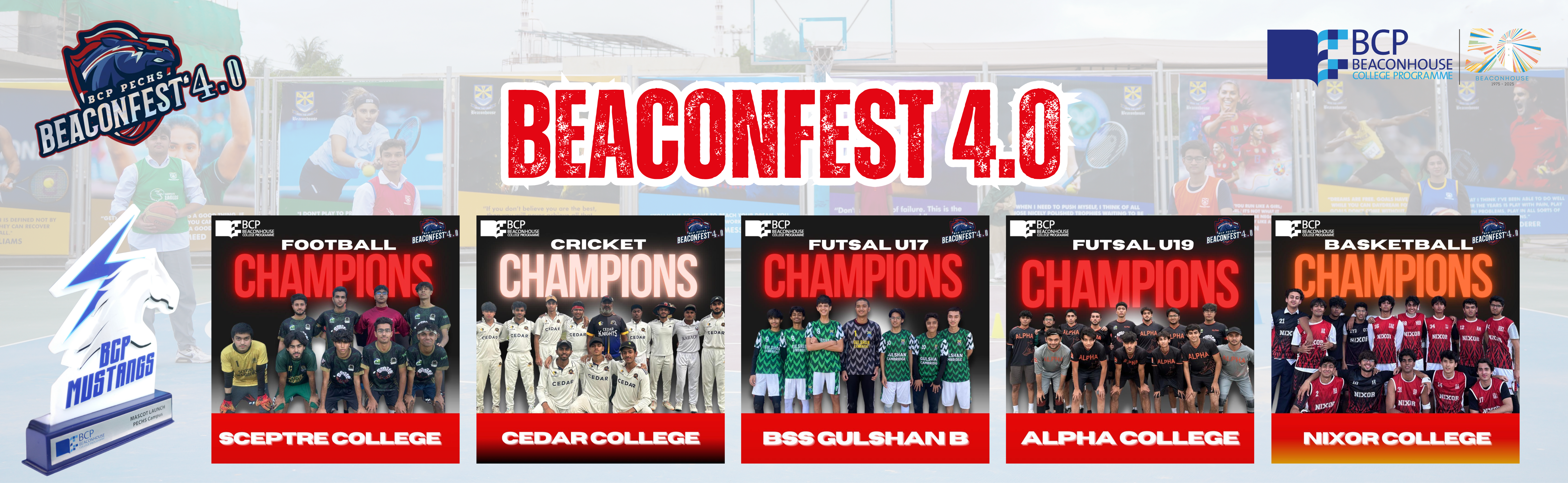 BCP PECHS hosted the exhilarating BeaconFest 4.0, drawing approximately 600 students from various institutions across Karachi. This highly anticipated inter-school sports extravaganza featured fierce competition across four dynamic sports: Cricket, Football, Basketball, Futsal U-19 & Futsal U-17.